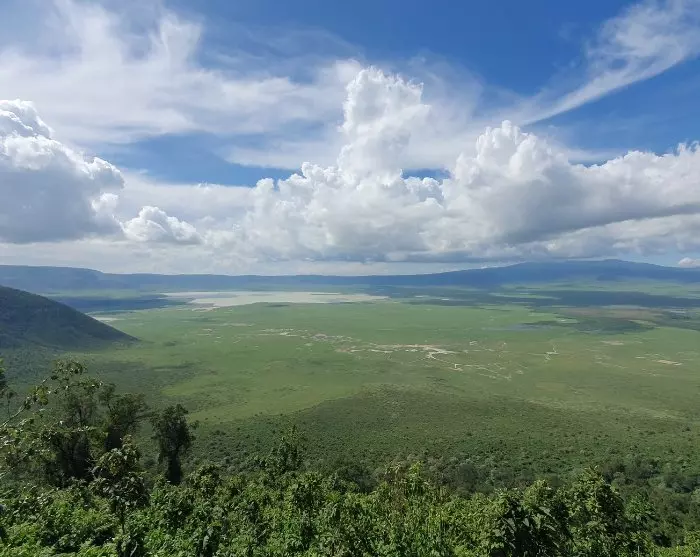 Der Ngorongoro-Krater gehört – genau wie die Serengeti – zum UNESCO-Weltnaturerbe. Und das ist nur zu verständlich. Es ist faszinierend, zu sehen, wie sich die Landschaft immer mehr ändert, je näher man dem Krater kommt. Vom Kraterrand schlängelt sich ein Weg 600 Meter an der Innenseite des erloschenen Vulkankraters hinunter in den 260 km² großen fruchtbaren Kraterboden. Im Krater gibt es Savanne, Sümpfe, Seen, kleine Flüsse, Akazienwäldchen und einen Salzwassersee. Der Krater ist das Zuhause von 25.000 – 30.000 Tieren. Den Kraterboden zu erleben wird von Vielen mit „einer Fahrt durch Jurassic Park“ verglichen, da einfach überall Tiere sind. In diesem verhältnismäßig kleinen Gebiet leben 5 Löwenherden, große Büffelherden, Flamingos – und sogar schwarze Nashörner haben den Weg hinunter in den Krater geschafft. Das einzige Tier, das man hier nicht sehen wird, ist die Giraffe, da die Giraffen nie in den Krater hinunter gekommen sind. Vermutlich, weil die steilen Hänge nicht für die extrem langen dünnen Beine geeignet sind.
