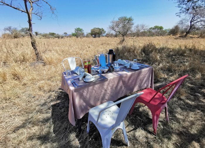 Eigentlich kaum zu glauben, da man in einem Safariauto oft viele Stunden lang sitzt. Trotzdem wird man in einem Safariauto wirklich hungrig! Vielleicht spielt die frische Luft dabei eine Rolle, vielleicht auch die (manchmal) holprigen Wege, oder vielleicht ist das Adrenalin schuld daran, dass man so hungrig wird. Es gibt daher in diesem Fall nichts Besseres als ein sättigendes Mittagessen, das mitten auf den weitläufigen Ebenen der Serengeti serviert wird.