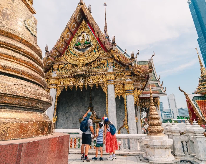 Bangkok bietet viele Transportmöglichkeiten, sodass Sie sich keine Sorgen über den berüchtigten Verkehr machen müssen, wenn Sie die Stadt erkunden. Viele entscheiden sich für Tuk-Tuks oder buchen Fahrten über die Grab-App, aber auch Flussboote sind beliebt und ein wichtiger Bestandteil des öffentlichen Verkehrsnetzes, da sie an vielen großen Sehenswürdigkeiten der Stadt halten. Zudem bietet der Skytrain eine schnelle, bequeme und kostengünstige Möglichkeit, sich zwischen Hochhäusern hindurchzubewegen.