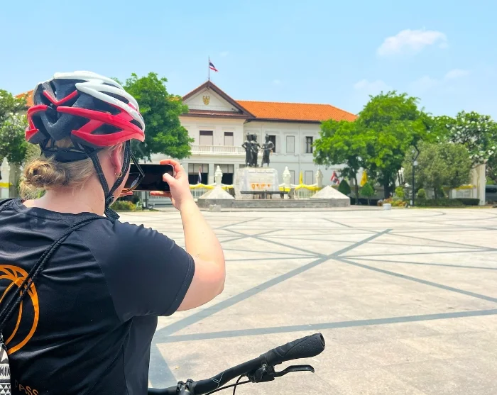 Unterwegs bekommen Sie einen Blick auf verschiedene berühmte Wahrzeichen Bangkoks, die abends wunderschön beleuchtet sind. Dazu gehört das Demokratie-Denkmal an der belebten Ratchadamnoen Avenue – nicht weit vom Grand Palace entfernt.