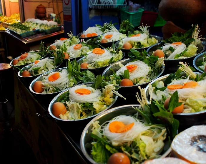 Als nächstes kommen Sie in einem beliebten Pad Thai Restaurant an, das als Bib Gourmand eingestuft wird. Der Bib Gourmand ist eine Auszeichnung des Michelin-Guides für Restaurants, die gut zubereitete Mahlzeiten zu vernünftigen Preisen anbieten. Sie genießen dieses leckere Nationalgericht, das auf Bananenblättern serviert wird, und können sogar einen Blick in die Küche werfen, um zu sehen, wie alles zubereitet wird.