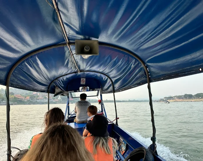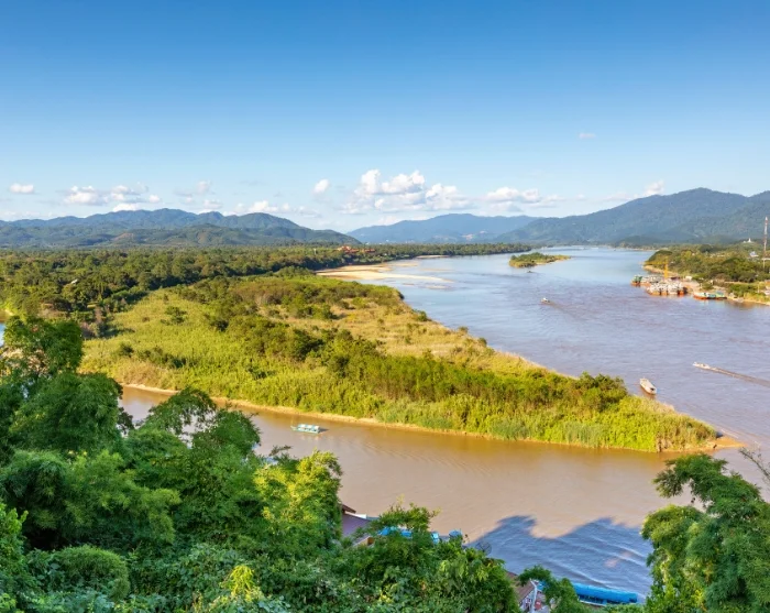 Nach dem Mittagessen erwartet Sie eine entspannende Bootsfahrt auf dem Mekong-Fluss, bei der Sie Laos auf der einen und Myanmar auf der anderen Seite erleben können.