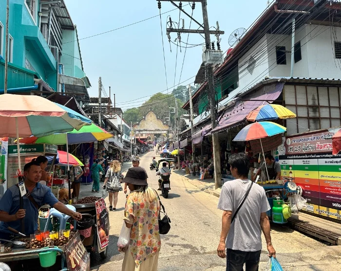 Ein aufregender Tag erwartet Sie in der malerischen Umgebung von Chiang Rai. Der Tag beginnt mit der Abholung von Ihrem Hotel und einer Fahrt zur Grenze von Mae Sai – ein Punkt, an dem Sie nur wenige Meter von Myanmar entfernt sind. Hier haben Sie die Gelegenheit, einen lebhaften Grenzmarkt zu erkunden, auf dem Sie alles unter der Sonne zu sehr günstigen Preisen kaufen können.