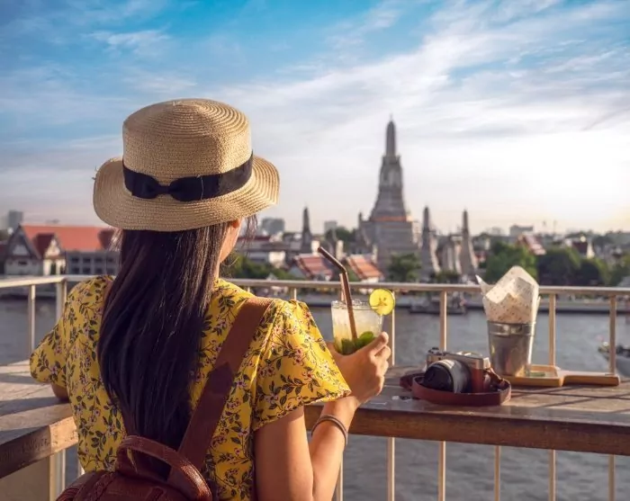 Der Abend klingt in einer entspannten Rooftop-Bar am Chao Phraya Fluss mit Blick auf den beleuchteten Wat Arun Tempel aus. Viel besser kann es nicht werden!
