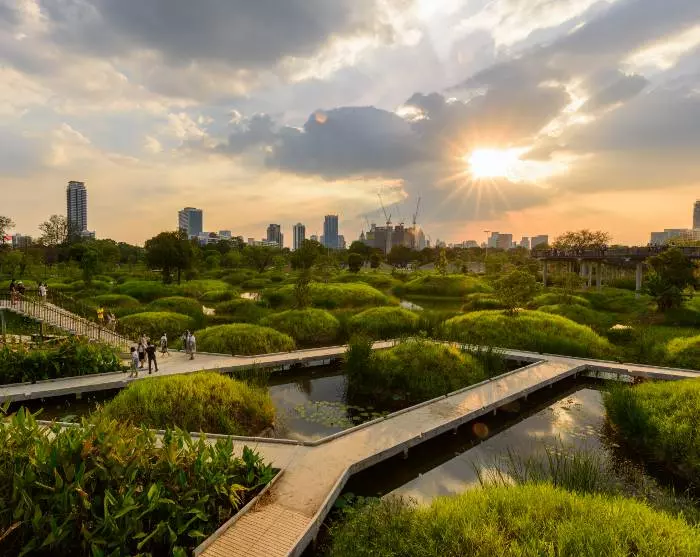 Wenn Sie eine ruhigere und grünere Umgebung suchen, können Sie den Lumpini- oder den Benjakitti-Park besuchen. Sie können auch auf die westliche Seite des Flusses wechseln, wo Sie eine völlig andere Welt ohne Wolkenkratzer und hupende Tuk-Tuks erleben werden. Hier treffen Sie auf das traditionellere Bangkok und ein Labyrinth von Kanälen, in denen die Menschen in Häusern auf Stelzen leben.