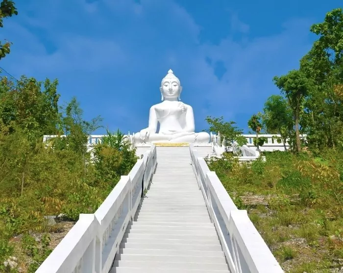 Von Yun Lai Hill fahren Sie weiter nach Wat Phra Mae Yen, auch bekannt als Big Buddha, einem ikonischen Wahrzeichen in Pai. Die beeindruckende Buddha-Statue erhebt sich majestätisch über dem Pai-Tal und ist von weitem sichtbar. Um die Statue zu erreichen, müssen Sie eine Treppe mit 350 Stufen erklimmen, aber Sie werden mit einem wunderbaren Blick auf das Tal und die umliegenden Berge belohnt.