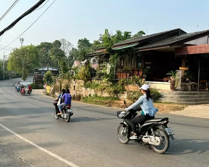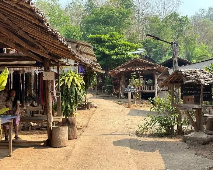 Sie fahren auf kurvenreichen Straßen zum kleinen Dorf Ban Huay Hom, das von Bergen und üppiger Natur umgeben ist. Das Dorf ist für seinen authentischen Charme bekannt und das Zuhause der Karen, die in traditionellen Holzhäusern leben.