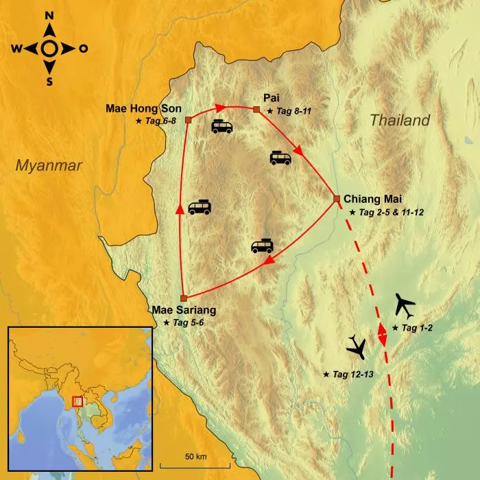 Besuchen Sie mit uns Nordthailand und erleben Sie Chiang Mai und den malerischen Mae Hong Son Loop. Die Reise ist für alle gedacht, die die Höhepunkte Thailands bereits erkundet haben und nun nach neuen Abenteuern abseits der ausgetretenen Pfade suchen.