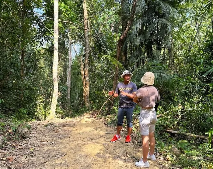 Sie können auch an einer spannenden Wanderung teilnehmen, die Sie durch den Dschungel zu einer der schönsten Tropfsteinhöhlen der Gegend, der Coral Cave, führt. Nehmen Sie unbedingt Wasser und festes, geschlossenes Schuhwerk mit und beachten Sie, dass es in der Regenzeit rutschig sein kann. Zusammen mit Ihrem Guide werden Sie in einem Langheckboot zum Ausgangspunkt der Wanderung geschippert. Auf der Wanderung erleben Sie die beeindruckende Tierwelt des Dschungels, und Ihr Guide wird Sie über die verschiedenen Arten entlang des Weges informieren. Vielleicht sehen Sie auch einige der Vögel und Insekten, die den Dschungel bewohnen. Nach etwa 45 Minuten erreichen Sie eine Lagune, wo ein Bambusfloß auf Sie wartet, das Sie in etwa 15 Minuten zur Korallenhöhle bringt. Im Inneren der Höhle können Sie wunderschöne Stalagmiten und Stalaktiten entdecken, die Elefanten, Hexen und Schlangen ähneln. Danach geht es auf demselben Weg zurück, den Sie gekommen sind.