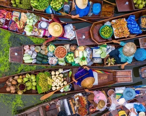 Glücklicherweise gibt es in Bangkok auch viele grüne Oasen, wenn man sich aus der tropischen Hitze und dem lärmenden Verkehr zurückziehen will. Erwähnenswert sind der Lumphini- und der Benjakiti-Park oder die grüne Insel Bang Krachao, die auch „Dschungel Bangkoks“ genannt wird. Hier scheint die Zeit stillzustehen.