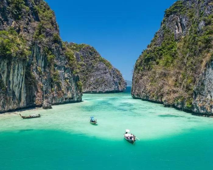 Noch weiter östlich befinden sich die paradiesischen Phi-Phi-Inseln. Bei einem Tagesausflug können Sie diese besuchen und die Zeit zum Baden, Schnorcheln und Entspannen an den kreideweißen Sandstränden nutzen.