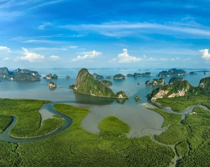 Östlich von Phuket liegt die Bucht Phang Nga, die für ihre vielen Inseln und beeindruckenden Kalksteinfelsen berühmt ist. Hier in der Bucht finden Sie u. a. die legendäre „James-Bond-Insel“, auf der im Jahre 1974 Teile des Films „Der Mann mit der goldenen Pistole“ gefilmt wurden.