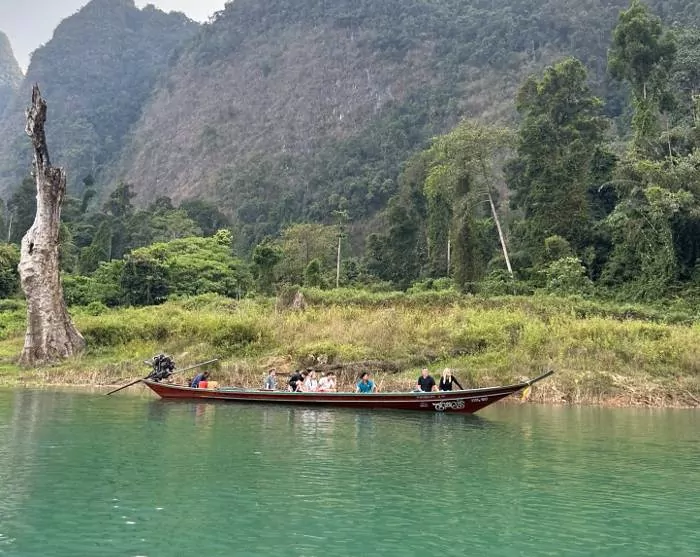 Danach werden Sie zur Mole Ratchabrapa, unweit eines beeindruckenden Damms, gefahren. Dort gehen Sie an Bord eines Langbootes und fahren auf den Chiao-Lan-See hinaus. Genießen Sie die majestätische Landschaft mit den ikonischen Kalksteinfelsen.