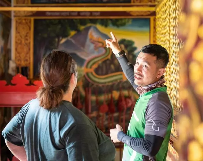 Nach einer wunderbaren 3- bis 4-stündigen Fahrradtour sind Sie bereit für ein wohlverdientes und köstliches Mittagessen, das aus dem Gericht „Khao Soi“ besteht – einer scharfen Nudelsuppe, die eine Spezialität in Nordthailand ist. Das Mittagessen wird im Restaurant Naree De Klang Vieng serviert, das von Insassen aus dem Frauengefängnis Klang Vieng geführt wird. Dank des ausgezeichneten Rehabilitationsprojekts des Gefängnisses haben die Frauen, die typischerweise wegen des Verkaufs oder der Herstellung von Drogen verurteilt wurden, die Möglichkeit, in verschiedenen Dienstleistungsberufen zu trainieren, die sie auf ein neues Leben außerhalb der Gefängnismauern vorbereiten. Das Essen und der Service sind unübertroffen!