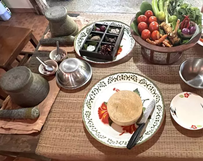 Genießen Sie bis zum Auschecken den ruhigen Morgen und Vormittag. Danach werden Sie im Hotel abgeholt und zum Dorf Bandoo in der Provinz Hang Dong gefahren, die ca. 20–30 Autominuten von Chiang Mai entfernt ist. Sie kommen in einem traditionellen Teakholzhaus an, das ungefähr 150 Jahre alt ist. Das Haus ist im Besitz der Familie Raunkaew-Yanon, die eine große Rolle bei der Entstehung und Bewahrung der Lanna-Kultur in diesem Gebiet gespielt hat.