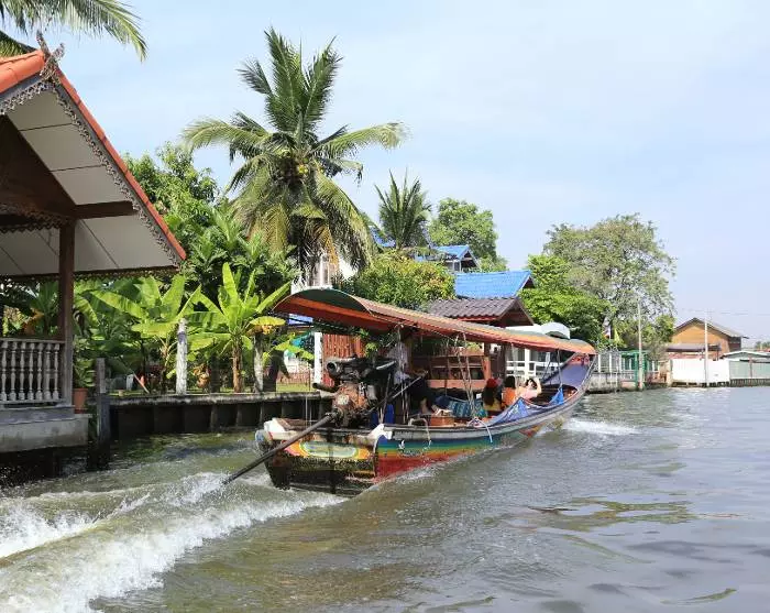 Nachdem Sie in der tropischen Hitze bei lärmendem Verkehr durch Bangkok gestapft sind, gibt es sicher Momente, an denen Sie sich zu grüneren und ruhigeren Orten träumen. In solchen Momenten empfehlen wir Ihnen einen Besuch im Benjakiti- oder Lumphini-Park. Sie können aber auch auf die Westseite des Flusses wechseln, wo eine ganz andere Welt ohne Wolkenkratzer und hupenden Tuk-Tuks auf Sie wartet. Dort erlebt man das authentische Bangkok und ein Labyrinth an Kanälen, an denen die Häuser auf Pfählen errichtet wurden und die Post noch immer per Boot kommt.