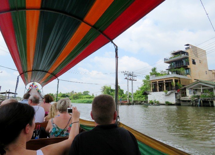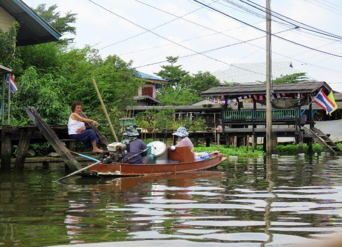 Von dort spazieren Sie das kurze Stück zum Königsfluss Chao Phraya hinunter, wo Sie an Bord eines Langbootes gehen. Sie werden durch ein Labyrinth an Kanälen, auch „Klongs“ genannt, in den Stadtteil Thonburi in Westbangkok gefahren. Früher wurde der Großteil des täglichen Handels in Bangkok auf und entlang der Kanäle abgewickelt. Diese Methode war so verbreitet, dass die europäischen Handelsreisenden, Besucherinnen und Besucher der Stadt den Beinamen „Venedig des Ostens“ gaben. Die Kanäle sind unglaublich wichtig für die Einheimischen und strahlen fantastische Ruhe, Fruchtbarkeit und Charme aus. Entlang der Kanäle sieht man Häuser auf Pfählen mit kleinen Treppen zum Wasser hinunter. Dort werden Sie erleben, wie Leute gerade ihr Haar oder ihre Wäsche waschen. Auf den Verandas sehen Sie häufig kleine Kinder mit ihren Großmüttern, die auf die Wasserpost oder den Eisverkäufer, der auch mit dem Boot kommt, warten. Dieser Teil von Bangkok ist mit seinem ganzen Wesen das genaue Gegenteil von der dichten Bebauung von Zentralbangkok mit Wolkenkratzern, Hochbahnen und Autobahnen.