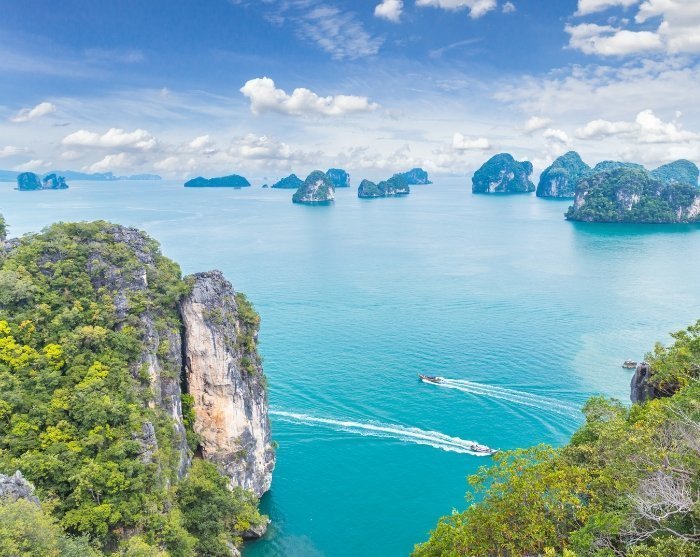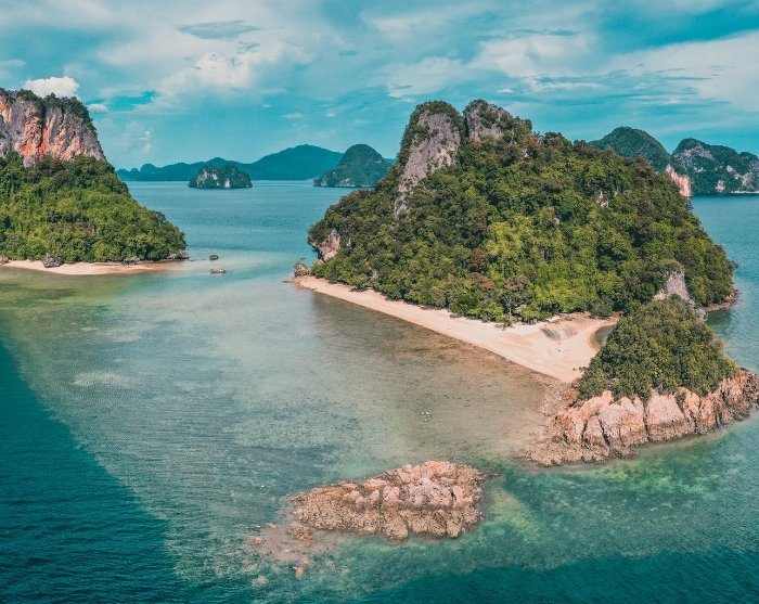 Wieder am Langboot angekommen, geht es weiter zu den kleinen, idyllischen Inseln Koh Lao La Ding und Pak Bia Island, wo Sie schnorcheln und die bunte Unterwasserwelt erleben können. Bei Ebbe werden Sie sehen, wie eine Sandbank auftaucht, die Pak Bia Island mit der benachbarten Insel Koh Lao La Ding, die den Beinamen Paradiesinsel hat, verbindet. Durch die Lage der Inseln in der Nähe der Bucht Phang Nga ist das Wasser hier noch smaragdgrüner und türkiser, der Sand wirkt eher golden als weiß.