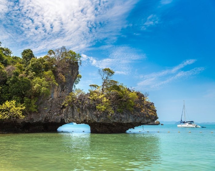 Zuerst besuchen Sie die Insel Hong Island zwischen Krabi und Koh Yao Noi. Hong Island liegt im Than Bok Khorani Nationalpark und ist berühmt für ihre atemberaubende Schönheit. Zwei wunderschöne Strände mit feinem, weißem Sand und kristallklarem Wasser, umgeben von spektakulären Kalksteinfelsen, warten auf Hong Island auf Sie. Der Rest der Insel ist von einem grünen Dschungel bedeckt, in dem verschiedene Pflanzen- und Tierarten gedeihen.