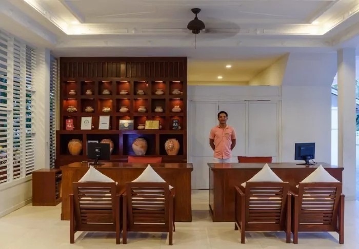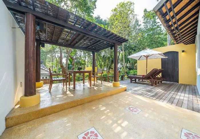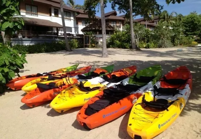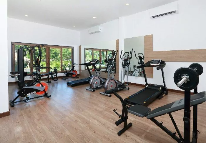Das Resort bietet auch eine Reihe von Einrichtungen, die ein komplettes Urlaubserlebnis zu gewährleisten. Nach einem Tag voller Erkundungen können Sie im großen Außenpool schwimmen, der von tropischen Bäumen und Pflanzen umgeben ist. Wenn Sie während Ihrer Reise fit bleiben möchten, verfügt das Resort auch über einen kleinen Fitnessraum.