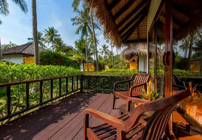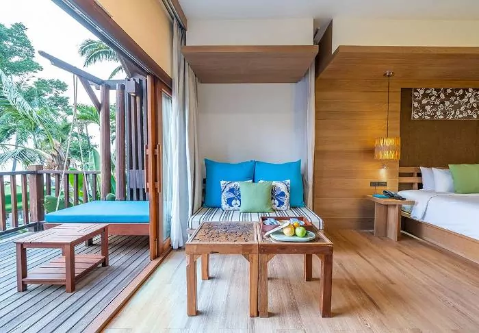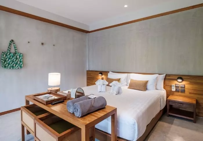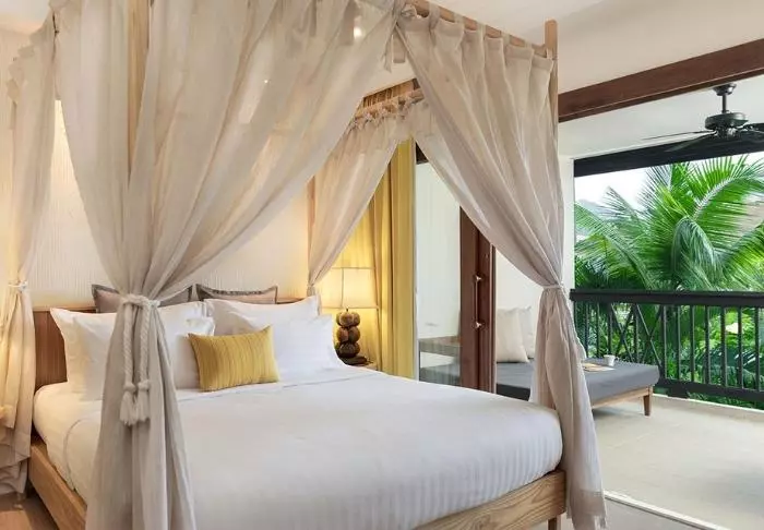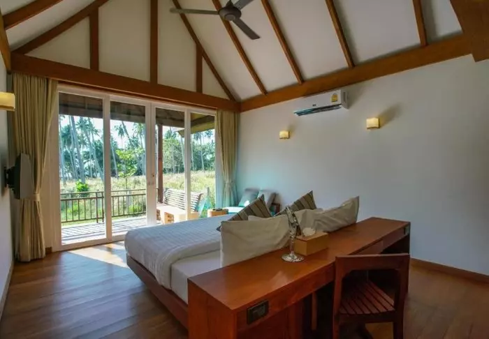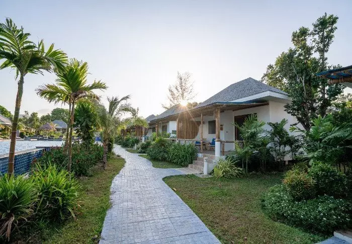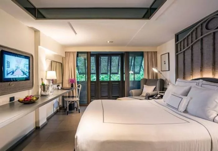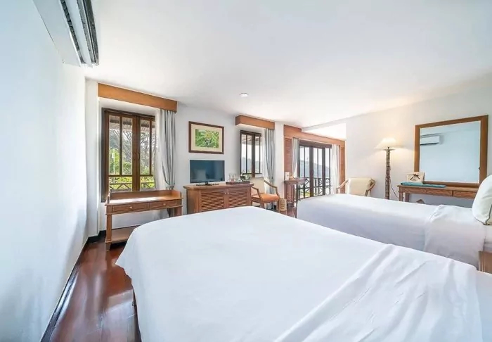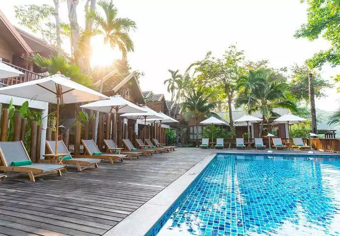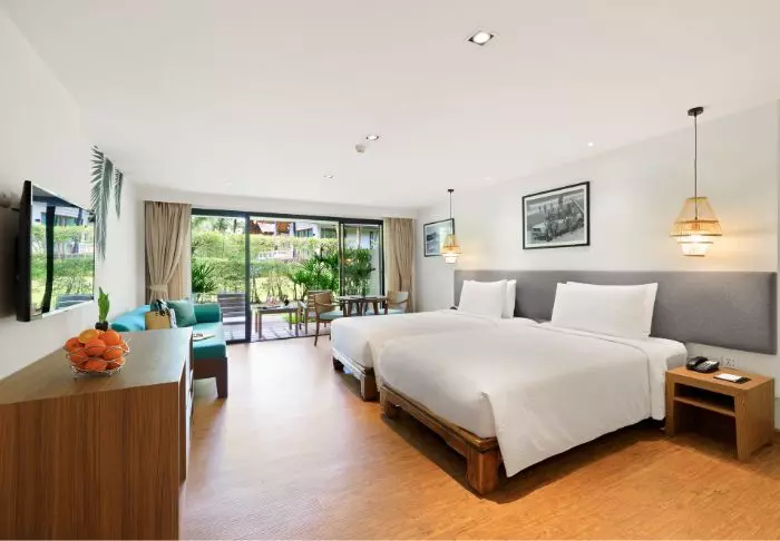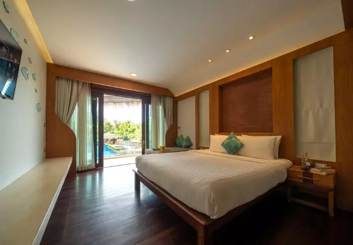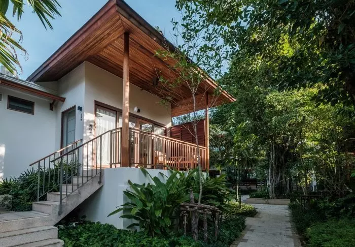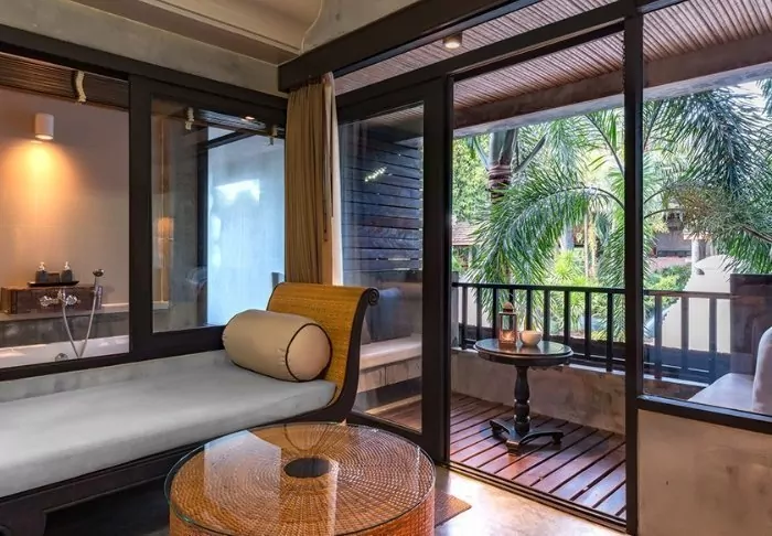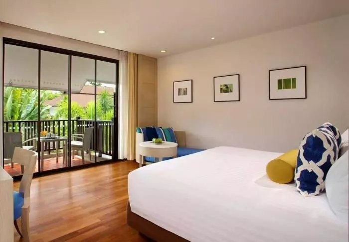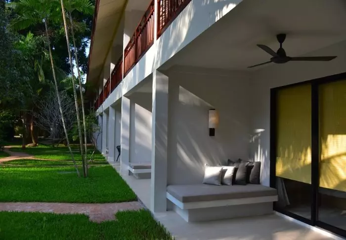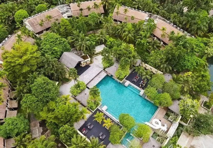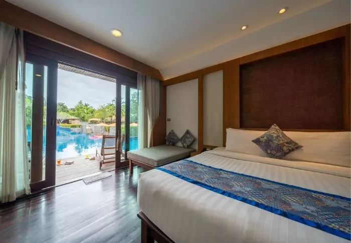Das Resort liegt inmitten von Palmen und tropischen Bäumen. Direkt im blühenden Garten stehen die Bungalows sowie ein eigenes Hotelgebäude mit Aussicht auf und Zugang zum Pool. Das Resort bietet insgesamt 80 hervorragend eingerichtete und mind. 35 m² große Zimmer, die Eleganz mit thailändischem Charme und Naturmaterialien kombinieren. Jedes Zimmer wurde mit Liebe zum Detail ganz auf Komfort und Ruhe ausgelegt. Alle Zimmer sind mit WLAN, Klimaanlage, Minibar, Safe, TV-Gerät sowie einer Tee- und Kaffee-Ecke ausgestattet. Vom kleinen Schlafsofa aus können Sie den Blick auf die grünen Gärten schweifen lassen. Jedes Zimmer verfügt sogar über eine möblierte Terrasse oder einen möblierten Balkon, von wo aus Sie die Umgebung und die wohlverdiente Ruhe genießen können. Das Badezimmer bietet sowohl eine Regendusche als auch eine Badewanne, einen Föhn und kostenlose Toilettenartikel.