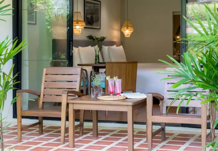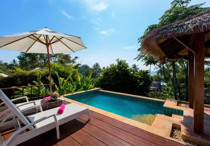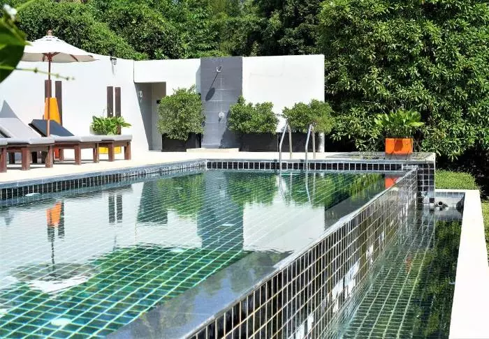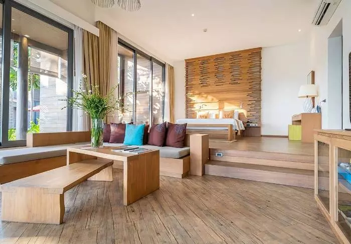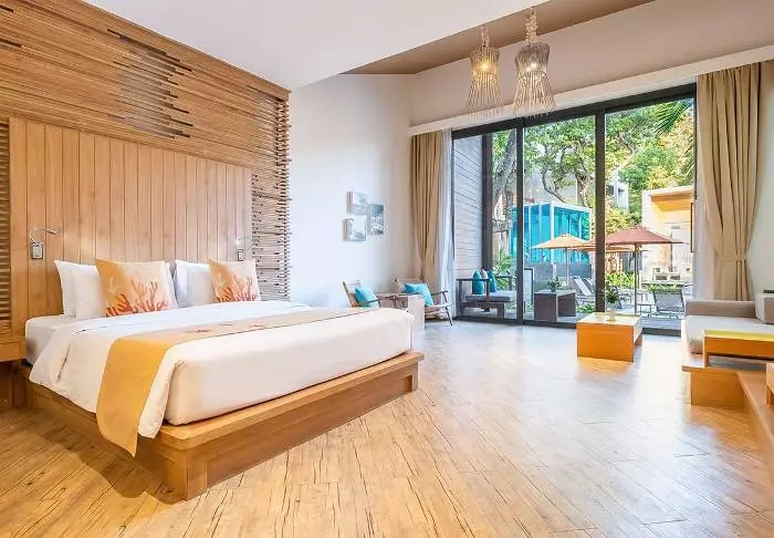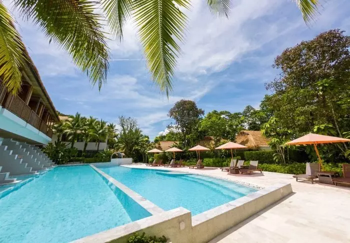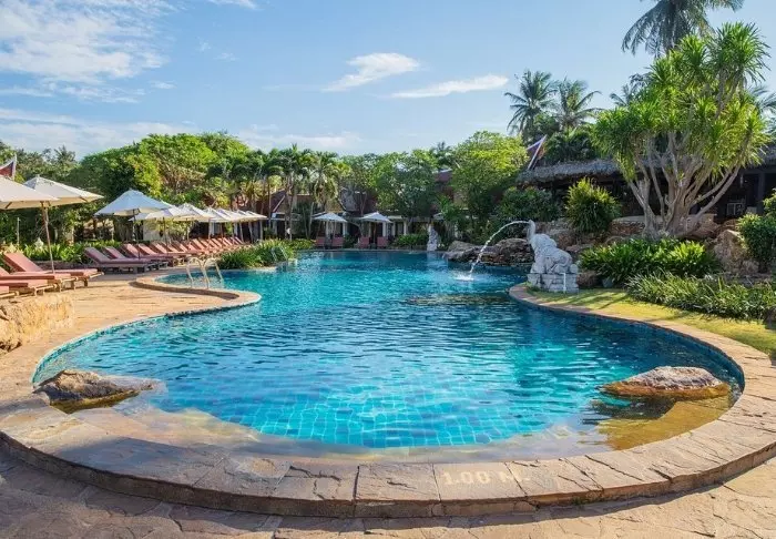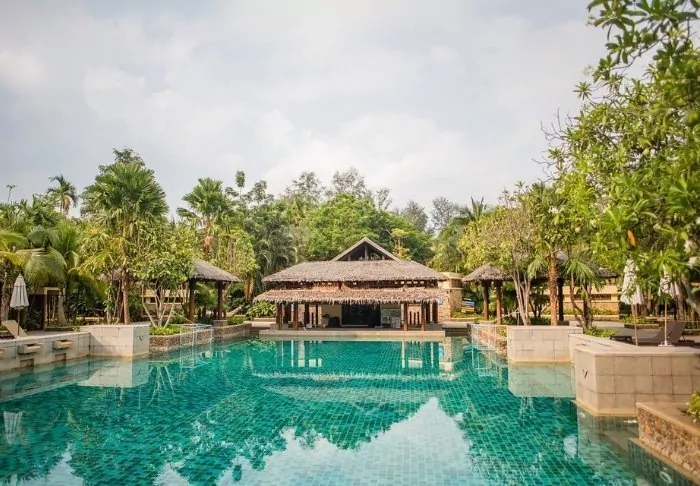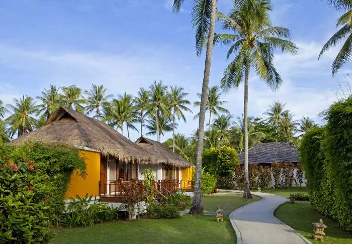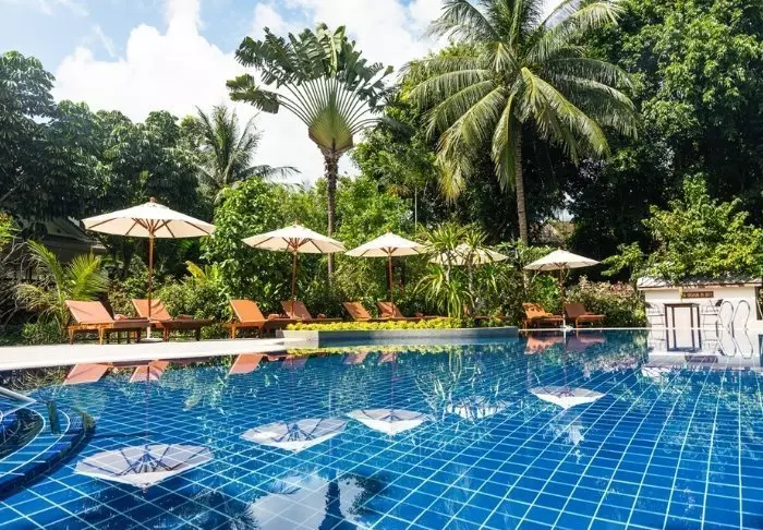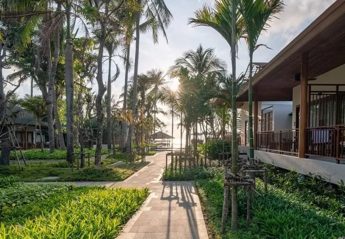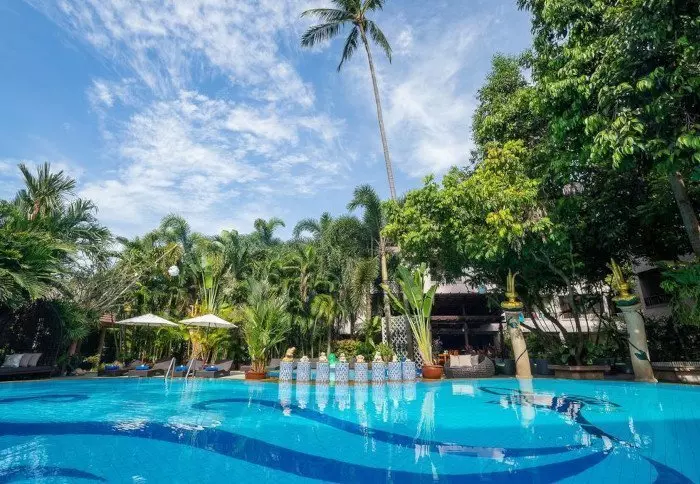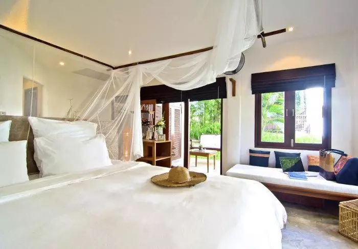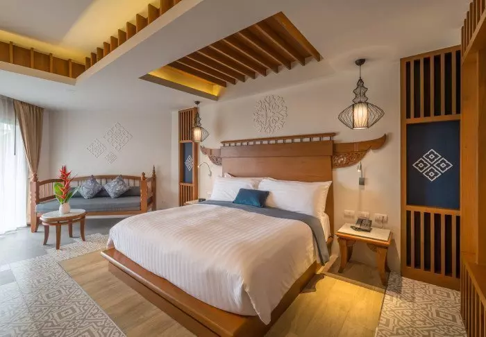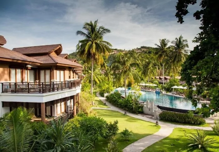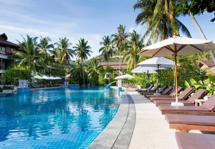 Das Resort liegt inmitten von Palmen und tropischen Bäumen. Direkt im blühenden Garten stehen die Bungalows sowie ein eigenes Hotelgebäude mit Aussicht auf und Zugang zum Pool. Das Resort bietet insgesamt 80 hervorragend eingerichtete und mind. 35 m² große Zimmer, die Eleganz mit thailändischem Charme und Naturmaterialien kombinieren. Jedes Zimmer wurde mit Liebe zum Detail ganz auf Komfort und Ruhe ausgelegt. Alle Zimmer sind mit WLAN, Klimaanlage, Minibar, Safe, TV-Gerät sowie einer Tee- und Kaffee-Ecke ausgestattet. Vom kleinen Schlafsofa aus können Sie den Blick auf die grünen Gärten schweifen lassen. Jedes Zimmer verfügt sogar über eine möblierte Terrasse oder einen möblierten Balkon, von wo aus Sie die Umgebung und die wohlverdiente Ruhe genießen können. Das Badezimmer bietet sowohl eine Regendusche als auch eine Badewanne, einen Föhn und kostenlose Toilettenartikel.