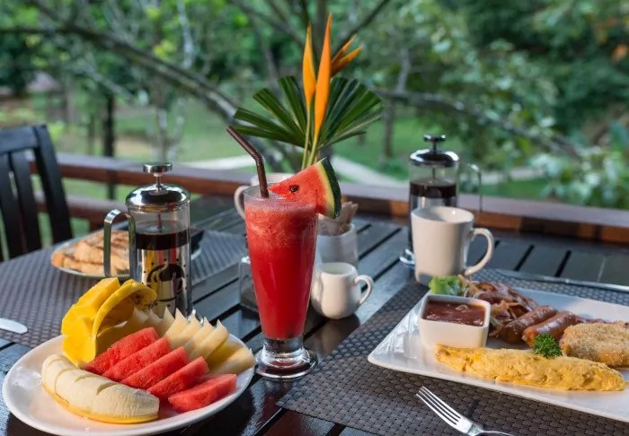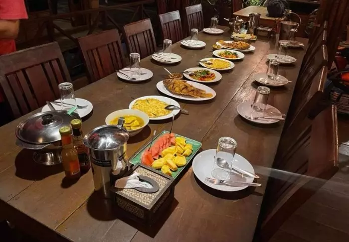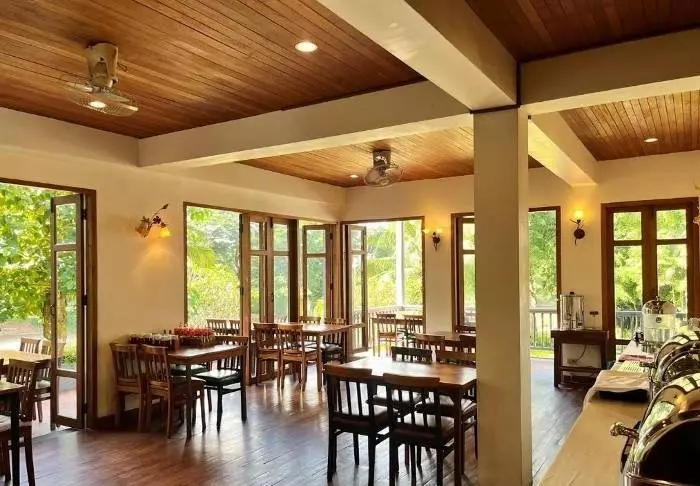 Das Resort verfügt über ein eigenes Restaurant, in dem lokale Gerichte aus frischen lokalen Rohwaren serviert werden. Während des Essens können Sie den Blick auf den Fluss genießen.