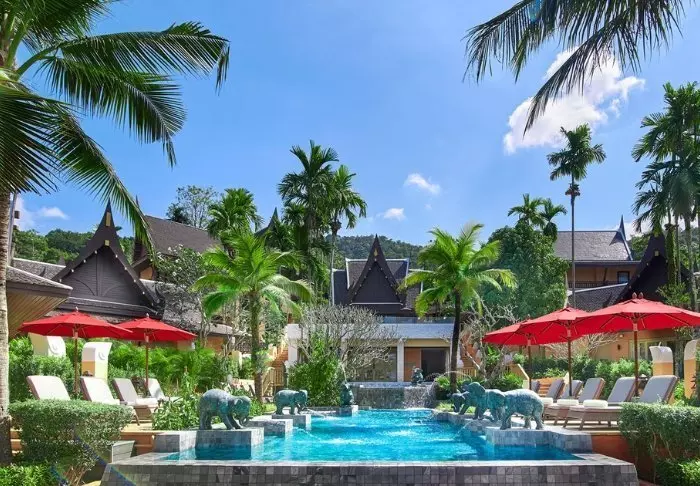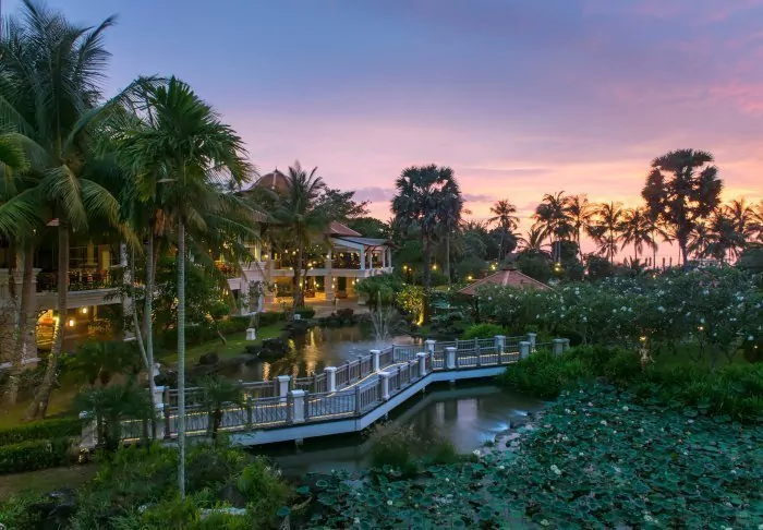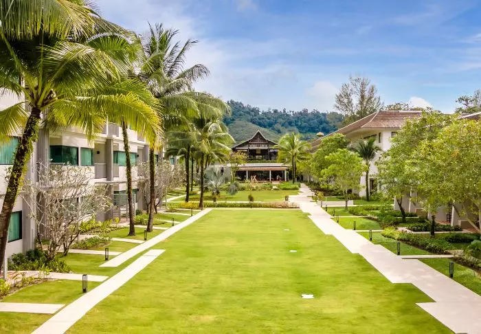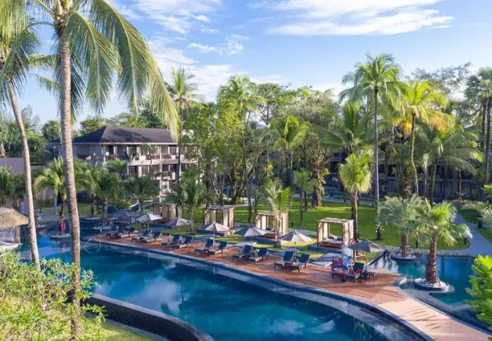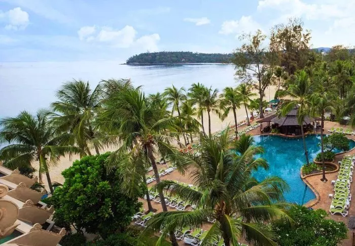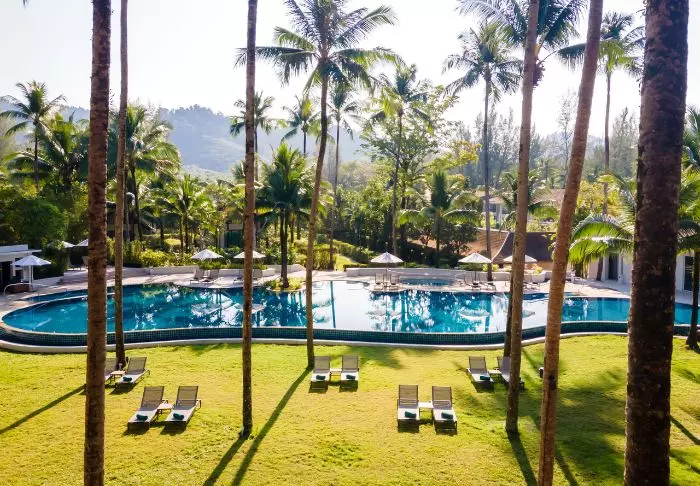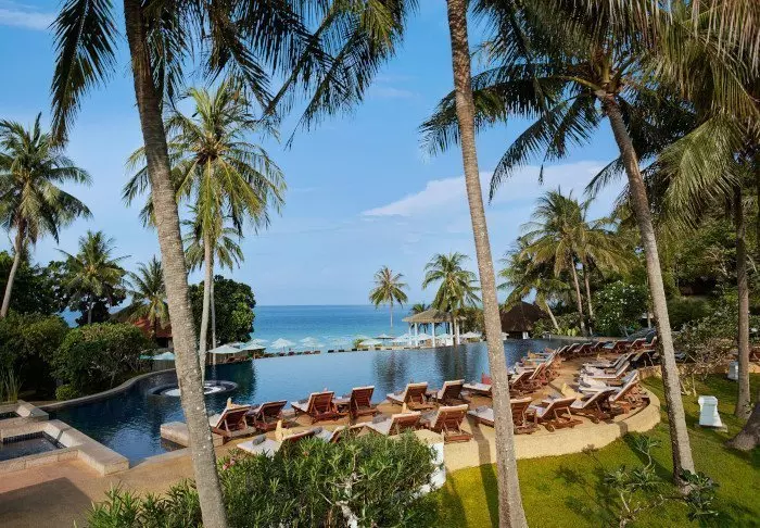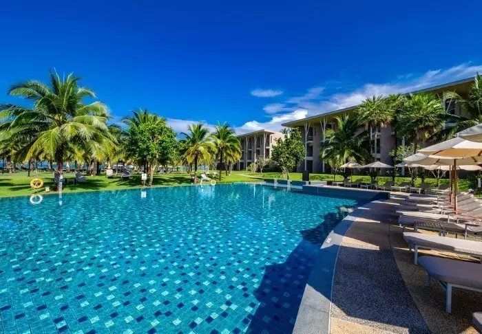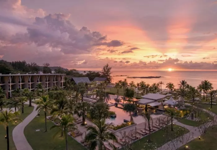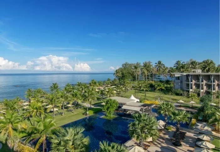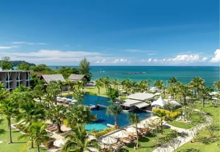 Vor grünen Bergen und zwischen wogenden Kokospalmen befindet sich das Outrigger Khao Lak Beach Resort, das direkt am Strand Bangsak mit Aussicht auf die Andamanensee liegt.