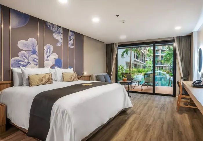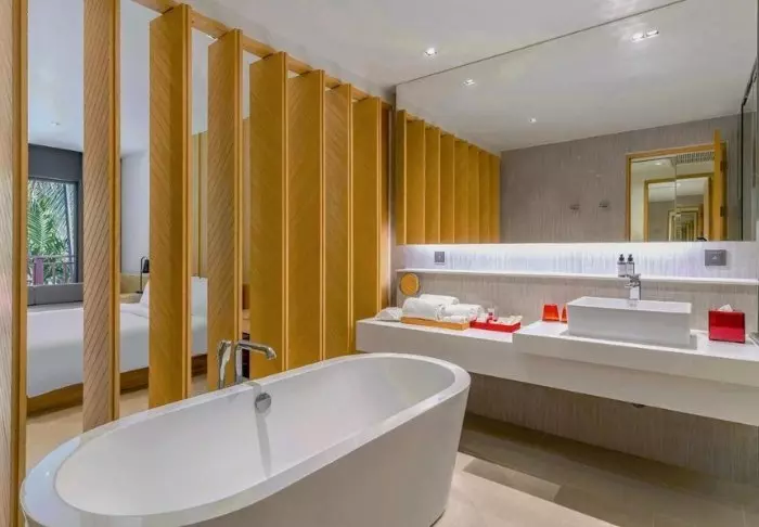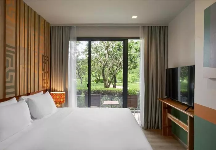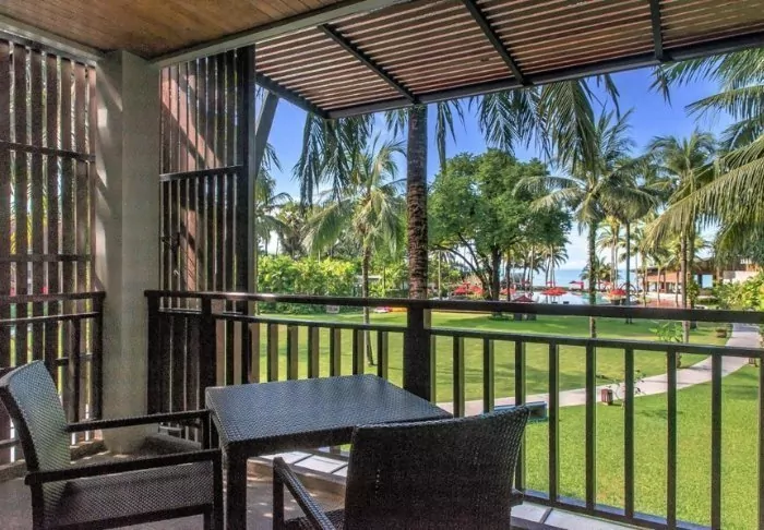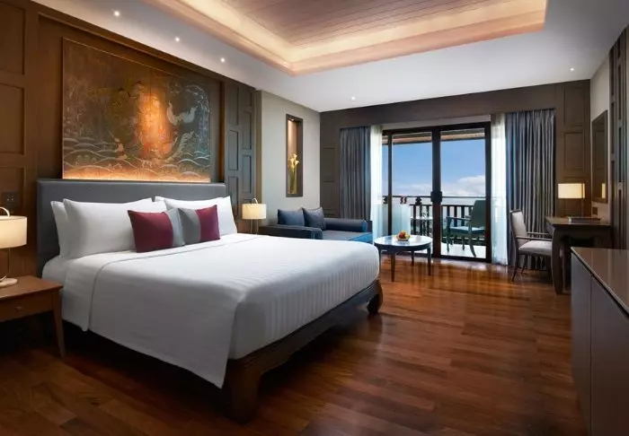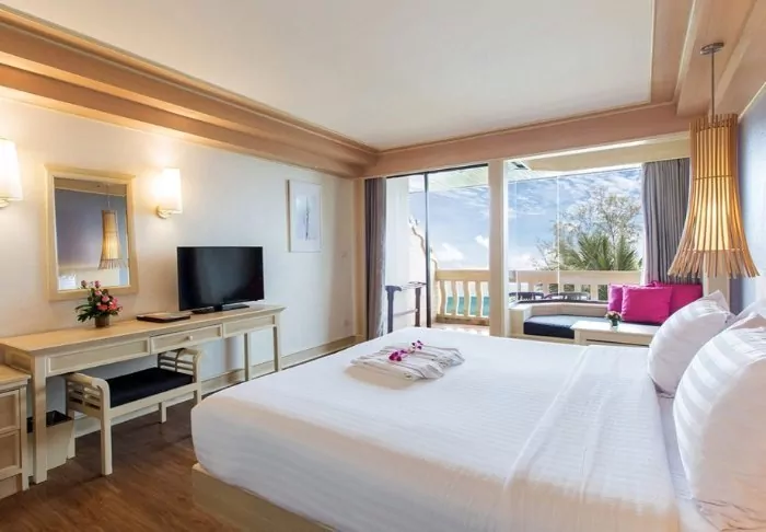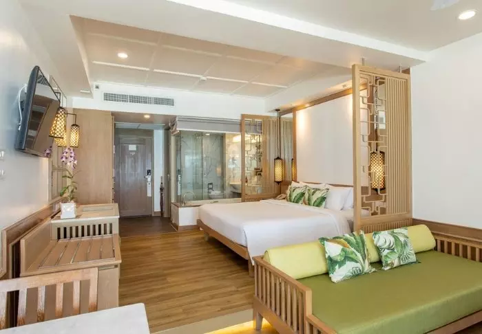 Das Resort bietet 275 Zimmer in modern-thailändischem Stil, die in hellen und dezenten Farben eingerichtet sind. Alle Zimmer verfügen über einen Balkon und sind mit WLAN, TV-Gerät, Klimaanlage, Minibar, Schreibtisch und einer kleinen Sitzecke ausgestattet. Im Badezimmer finden Sie eine Regendusche, einen Föhn, Bademäntel und Hausschuhe.