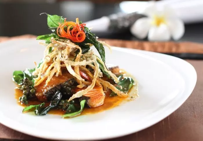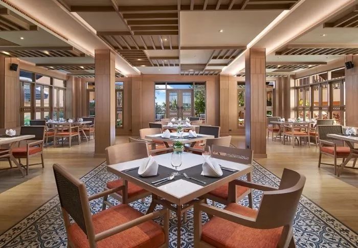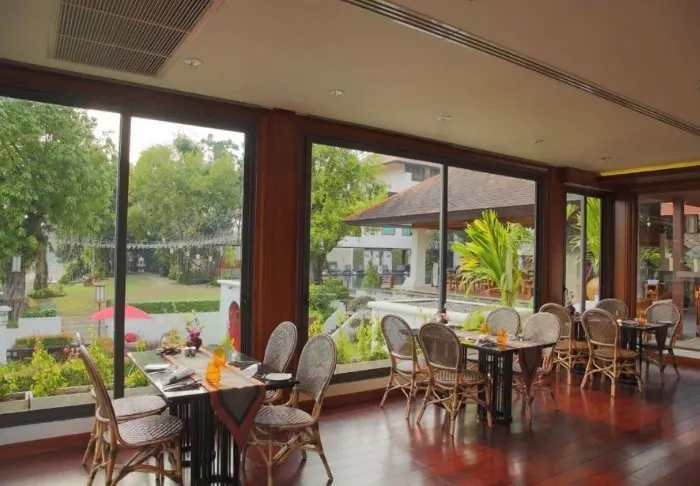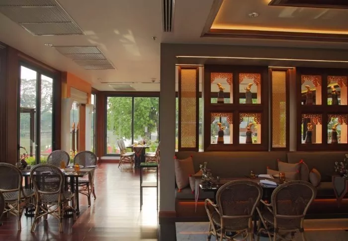 Das Resort bietet mehrere Restaurants und Bars. Das Hauptrestaurant Sala Rimnam befindet sich in grüner Umgebung am Fluss und bietet sowohl westliche als auch thailändische Gerichte, die in der offenen Küche zubereitet werden. Im La Casa Italian Restaurant werden leckere italienische Gerichte serviert, während im Suan Chainam, das in kleinen Terrassen im Garten liegt, BBQ und Tapas sowie kühles Bier, exotische Cocktails und Wein serviert werden.