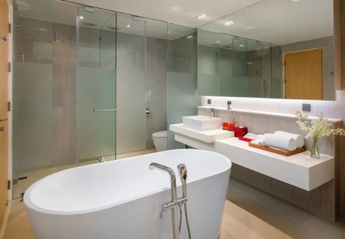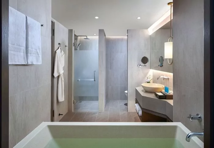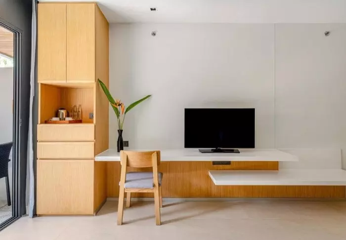 Sie übernachten in einem der geräumigen, bis zu 54 m2 großen Studios des Resorts. Die offene Planlösung fördert Intimität und gemütliche Momente. Folgende Ausstattung steht Ihnen zur Verfügung: Klimaanlage, TV, WLAN, Schreibtisch, Möglichkeit zur Kaffee- und Teezubereitung sowie kostenloses Obst bei der Ankunft und Mineralwasser in Flaschen während Ihres Aufenthalts. In der Minibar finden Sie außerdem eine gute Auswahl an Getränken für die späten Abendstunden, die Sie auf Ihrer privaten Terrasse genießen können, während Sie auf dem schwebenden Hängematten-Sofa mit Platz für zwei Personen entspannen. Das Badezimmer ist in zwei Bereiche unterteilt und verfügt über einen separaten Duschbereich. Freuen Sie sich darauf, in der halboffenen Dusche mit kostenlosen Pflegeprodukten zu duschen, die Ihren Aufenthalt noch angenehmer gestaltet.