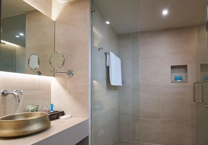 Die hellen und geräumigen Zimmer sind mit Textilien in ruhigen, erdigen Tönen dekoriert. Sie sind mit modernen Annehmlichkeiten wie WLAN, Klimaanlage, Deckenventilator, Minibar, Safe, kostenloses Mineralwasser in Flaschen, Wasserkocher zur Zubereitung von Tee und Kaffee sowie einem Kleiderschrank ausgestattet. Die Zimmer verfügen außerdem über ein schönes Badezimmer mit Dusche. Außerdem finden Sie Toilettenartikel, Bademantel, Hausschuhe und Badetücher zur kostenlosen Benutzung.