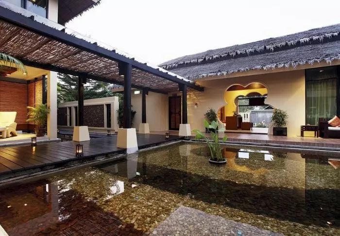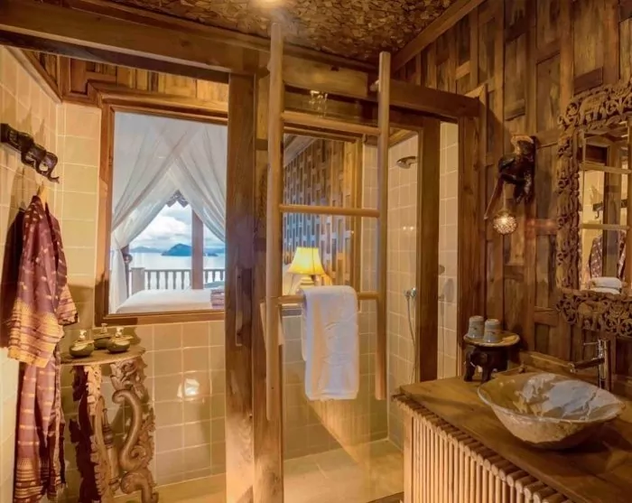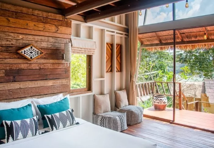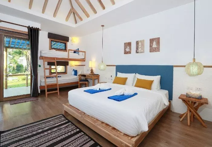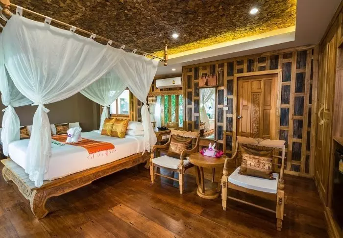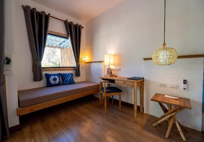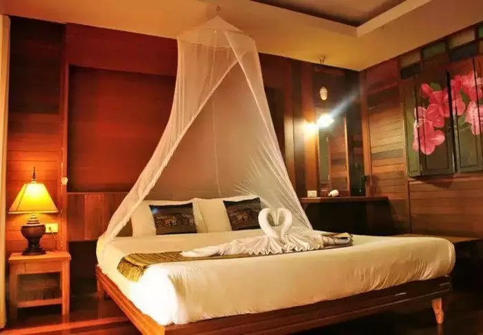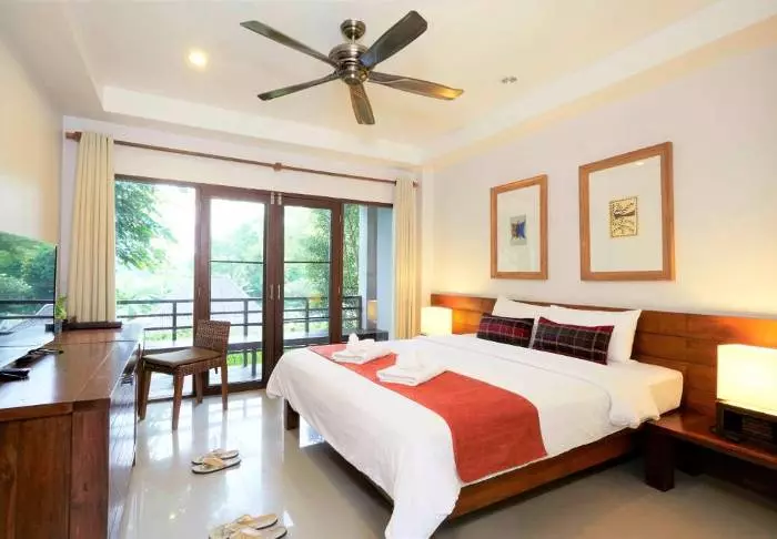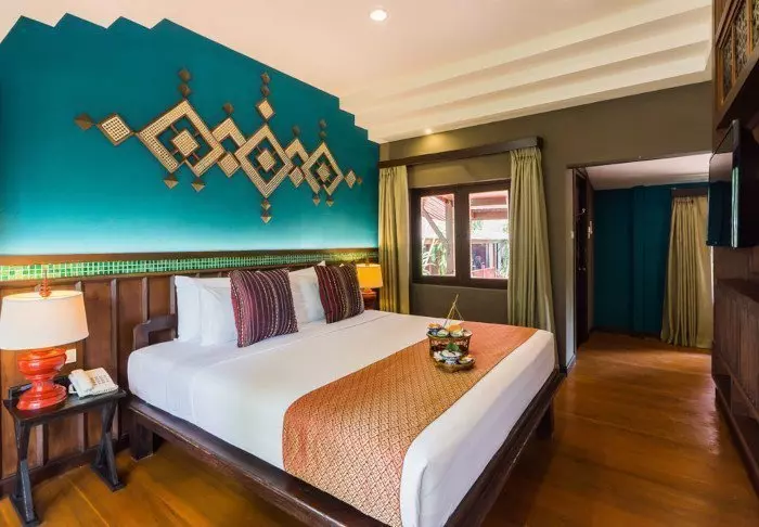 Das Resort wurde wie ein traditionelles Dorf errichtet und ist der Inbegriff von Gemütlichkeit. Die insgesamt 62 Zimmer sind alle in klassisch-thailändischem Stil mit dunklen Teakholzmöbeln und bunten Wänden und Textilien eingerichtet. Alle Zimmer verfügen über WLAN, Klimaanlage, Minibar, Mineralwasserflaschen, Kaffee-/Tee-Ecke, TV-Gerät, Telefon und Regenschirm. Im Badezimmer gibt es einen Föhn und kostenlose Toilettenartikel. Vom Balkon aus können Sie die Aussicht auf den Hafen oder den Kanal genießen.