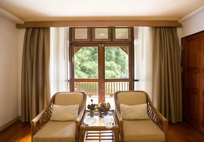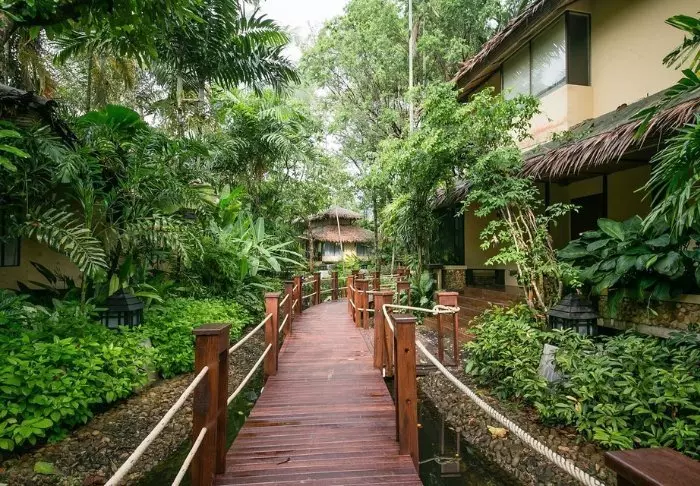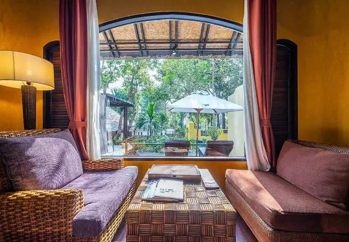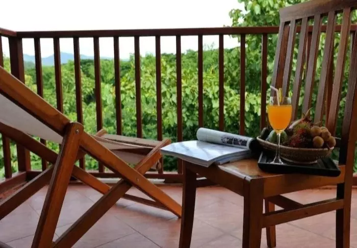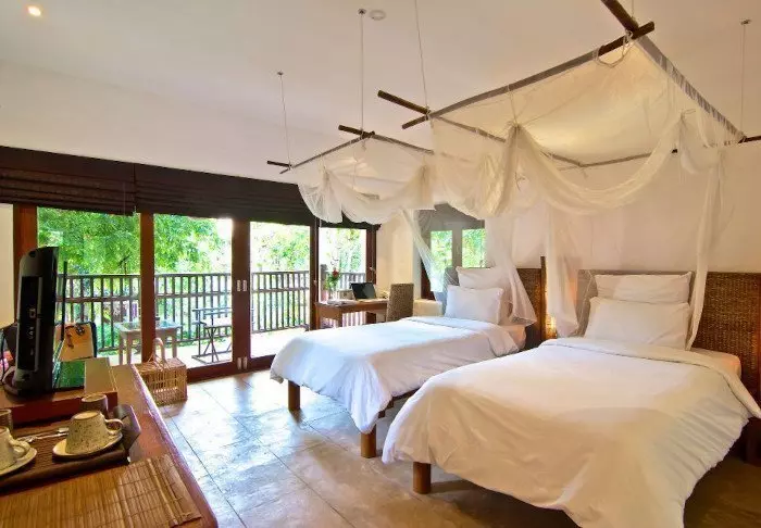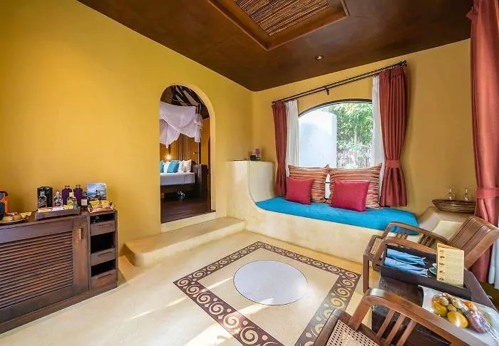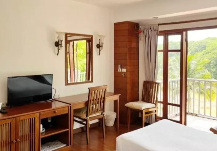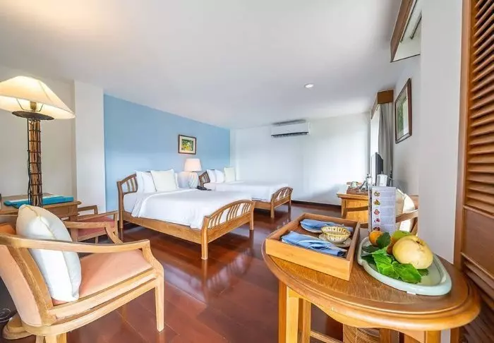 Das Resort bietet 50 geräumige Zimmer, die traditionell eingerichtet sind. Alle Zimmer verfügen über gratis WLAN, Klimaanlage, Safe, Minibar, Kaffee- und Tee-Ecke, Bügeleisen und Bügelbrett, TV-Gerät, Telefon, Schreibtisch, Föhn sowie ein Badezimmer mit separater Badewanne und Dusche. Von Balkon aus sieht man auf den tropischen Garten.