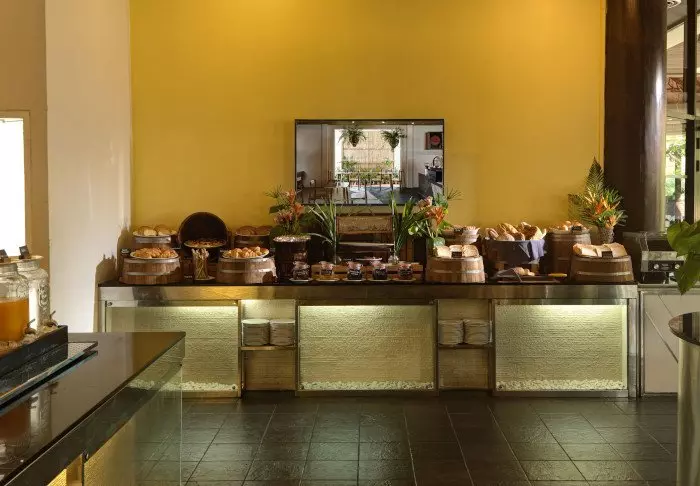 Das Hotel verfügt darüber hinaus über ein Café-Restaurant, in dem sowohl Frühstück als auch Mittag- und Abendessen serviert werden.