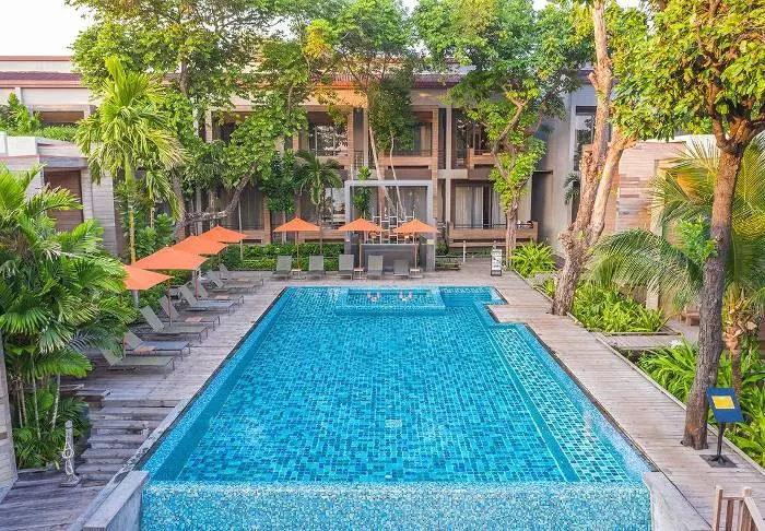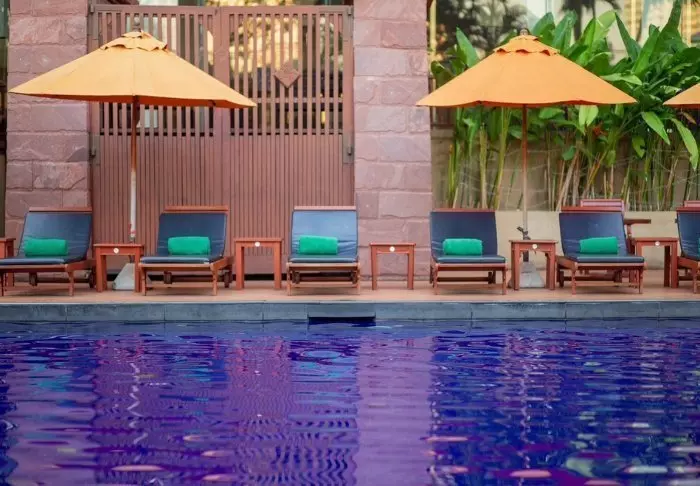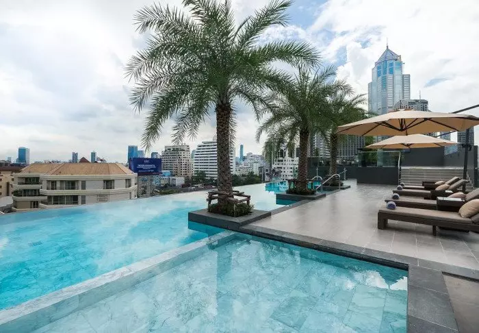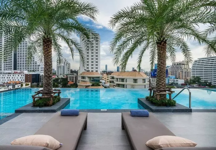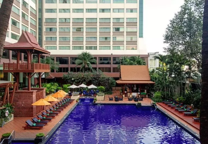 Wenn Sie gerade nicht die thailändische Hauptstadt erkunden, können Sie den Poolbereich genießen. Freuen Sie sich auf eine kleine Oase mit wogenden Palmen. Dort können Sie sich entspannen, ein erfrischendes Bad nehmen oder die Wärme der Sonne in einem Liegestuhl genießen. Auch ein gut ausgestattetes Fitnesscenter steht Ihnen im Hotel zur Verfügung. Trainieren Sie auf Cardio- und Krafttrainingsgeräten und bleiben Sie auch hier in Form. Wenn Sie sich noch besser entspannen möchten, können Sie in der Wellnessabteilung des Hotels eine Massage buchen oder sich mit einem Besuch der Sauna, des Dampfbads oder des Whirlpools verwöhnen lassen.