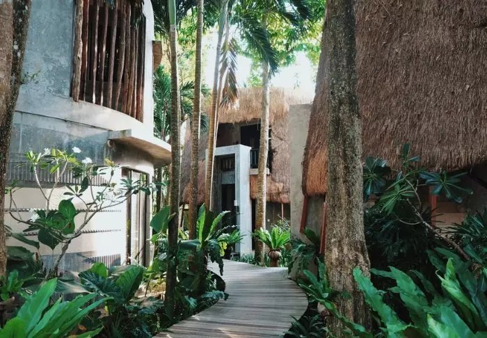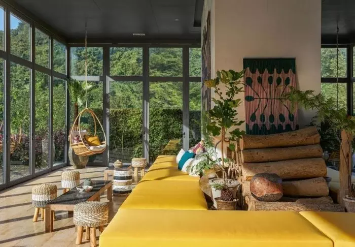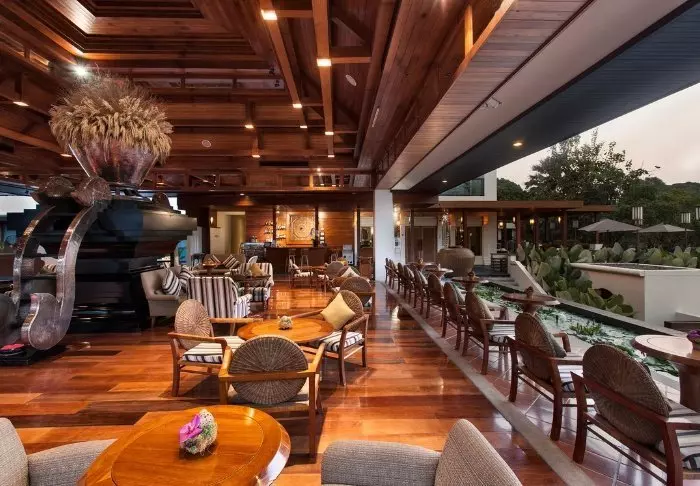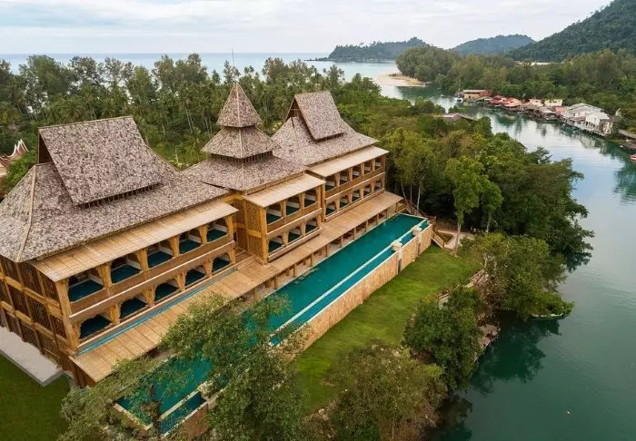 Das gesamte Resort wurde ausschließlich aus Holz errichtet und fügt sich deshalb und dank der eleganten Architektur wunderschön in die Umgebung ein.
