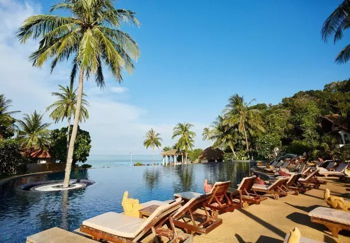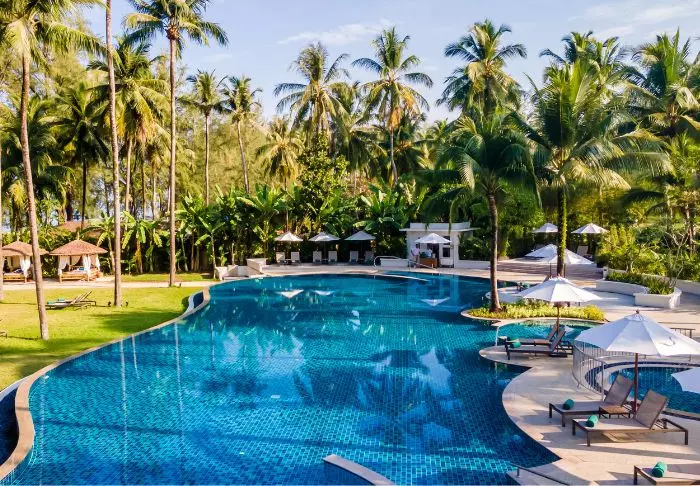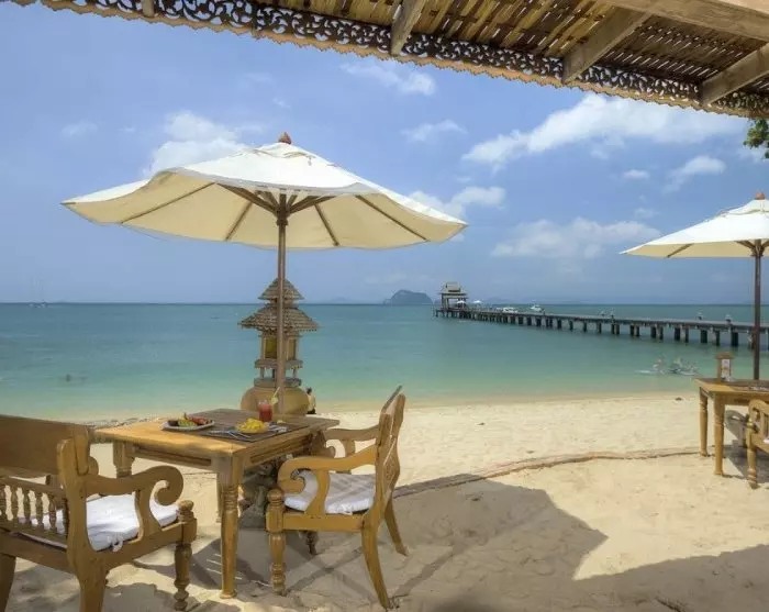Der Pool des Resorts ist einfach herrlich. Er grenzt direkt an den Strand, sodass Sie vom Beckenrand aus den Blick auf die Andamanensee genießen können. Wenn Sie sich entspannen möchten, können Sie es sich in einem der vielen Liegestühle bequem machen und von dort aus ebenfalls die herrliche Aussicht auf das Meer bewundern.