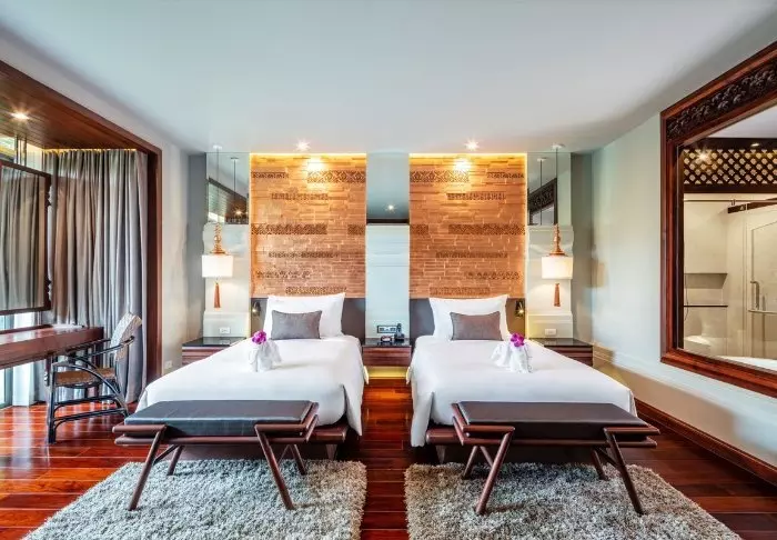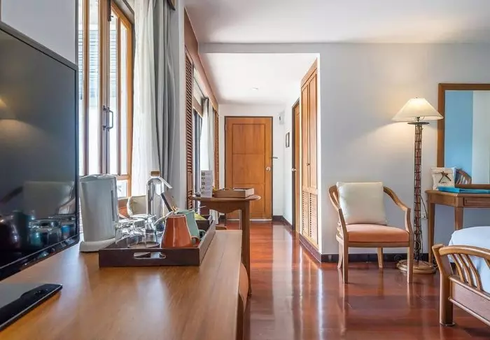 Das kleine, malerische Boutique-Hotel vereint traditionell-thailändische Architektur gekonnt mit modernem Luxus und Komfort. Auch in den eleganten Hotelzimmern werden Sie genau das bemerken. Sie sind mit liebevollen Details im klassisch-thailändischen Stil eingerichtet. Alle Zimmer verfügen über Klimaanlage, WLAN, TV-Gerät, Kaffee- und Tee-Ecke sowie über ein eigenes Badezimmer mit Regendusche und verschiedenen kostenlosen Toilettartikeln.
