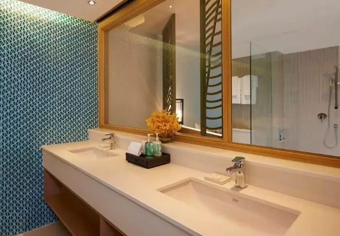 Das Hotel ist in 3 Flügel unterteilt: Lagoon Wing (am weitesten vom Strand entfernt), Seaside Wing (dem Strand am nächsten) und Aqua Wing (Wasserpark). Die drei Flügel verfügen über insgesamt 316 moderne und geräumige Zimmer, die einfach alles bieten, was man so braucht: Klimaanlage, WLAN, Kühlschrank, Safe, Tee- und Kaffee-Ecke, TV-Gerät und ein wunderschönes Badezimmer mit Föhn, Bademänteln und Hausschuhen. Der Balkon der Zimmer ist mit Tisch und Stühlen ausgestattet, sodass Sie die abendliche Brise bei einem Kartenspiel genießen können.