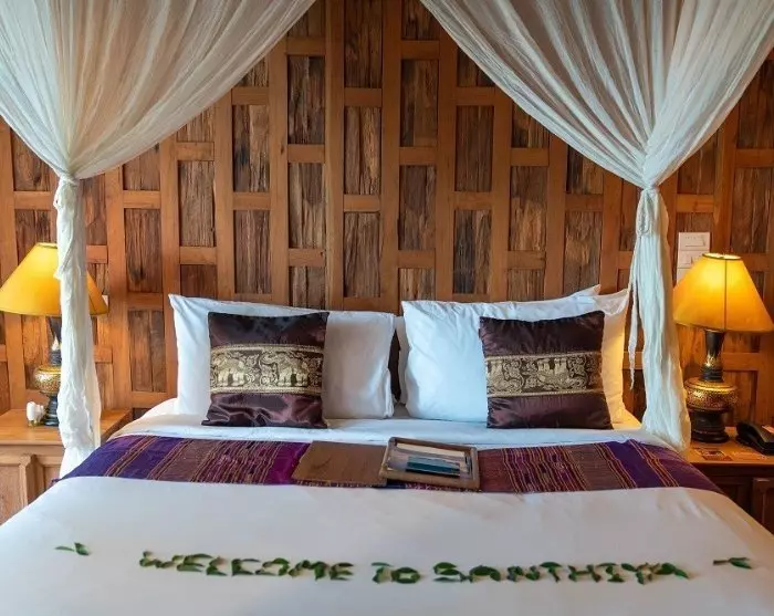 Die Übernachtungsmöglichkeiten im Santhiya sind einfach fantastisch. Jedes Zimmer und jede Villa haben ganz eigene, erlesen Details und somit ihren ganz eigenen Charme. Viele Zimmer und Villen bieten eine atemberaubend schöne Aussicht auf die Bucht und das Meer. Manche verfügen sogar über einen eigenen Pool. Der perfekte Rahmen also für einen romantischen oder entspannenden Urlaub mit der Familie. Alle Quartiere sind ansprechend, mit authentischen Holzschnitzereien und modernen Annehmlichkeiten wie Klimaanlage, WLAN, Flachbildschirm-TV-Gerät, Minibar und Safe eingerichtet. Über den Betten hängen Moskitonetze. Die wunderschönen Badezimmer sind mit kostenlosen Toilettartikeln, Föhn, Bademänteln und Badeschuhen ausgestattet. Morgens können Sie den Tag mit einer Tasse Kaffee auf dem geräumigen Balkon mit Daybed und Deckenventilator beginnen.