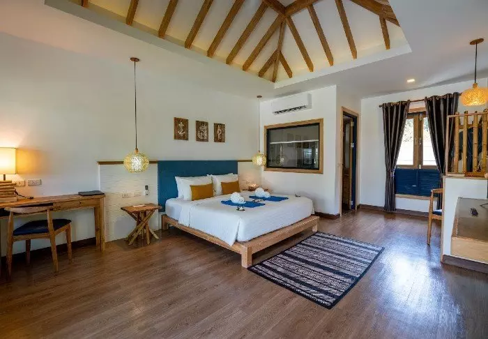 Erwachen Sie zum Meeresrauschen und beobachten Sie, wie die Sonne über der Insel aufgeht. Sie können zuerst eine Tasse Kaffee auf Ihrer Veranda, anschließend ein herrliches Frühstück genießen. Danach können Sie sich auf einen Tag am weißen Sandstrand freuen. Bewundern Sie die atemberaubend schöne Andamanensee und nehmen Sie im Swimmingpool ein erfrischendes Bad.