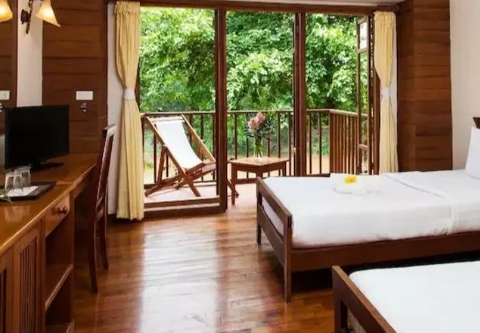 Das Resort verfügt über 42 komfortable Zimmer im traditionellen thailändischen Stil mit Teakholzmöbeln. Sie sind alle mit komfortablen Betten, Klimaanlage, WLAN, Safe, einem elektrischen Wasserkocher zum Tee- und Kaffeekochen sowie mit einem Kleiderschrank und einem Schreibtisch ausgestattet. Das Badezimmer ist hübsch und schlicht, mit Dusche und Pflegeprodukten. Sie können sich mit einer Tasse Kaffee auf Ihren Balkon setzen und die Ruhe und den Blick auf den gepflegten Garten und den Yuam River genießen, während der Gärtner des Resorts die Pflanzen im Garten wässert.