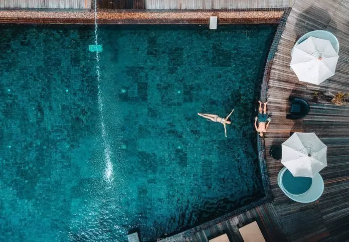 Die Sonne geht unter. Bevor Sie sich fürs Abendessen umziehen, springen Sie noch ein letztes Mal in den „Rooftop-Pool“. Von dort können Sie erahnen, wie die Sonne über der Andamanensee untergeht. Der Himmel verfärbt sich rot-lila, und die Grillen singen ihr Lied.