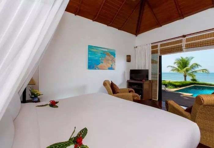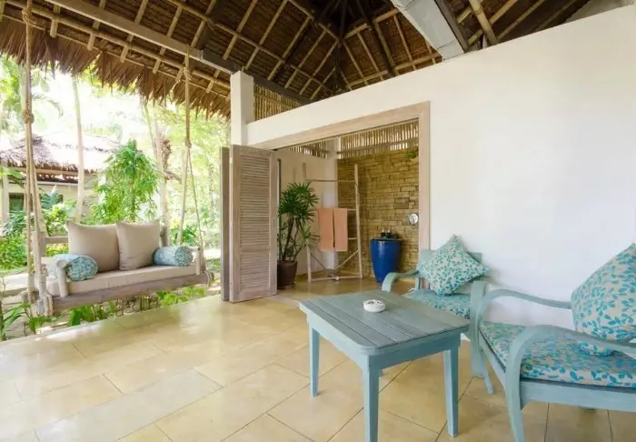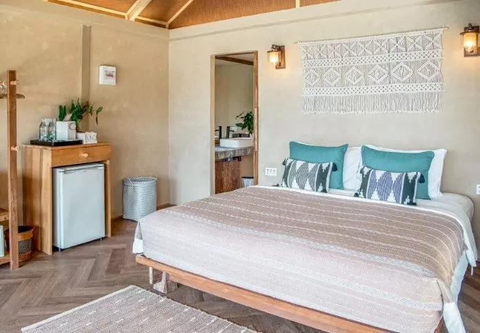 Es gibt insgesamt 76 56 m² große Zimmer, die alle schlicht und hell eingerichtet sind. Sämtliche Zimmer sind mit WLAN, Klimaanlage, Bett mit Moskitonetz, Mineralwasserflaschen, Minibar, Tee-/Kaffee-Ecke, Safe, TV-Gerät, Telefon und Schreibtisch ausgestattet. Im Badezimmer befinden sich herrliche Bademäntel, Hausschuhe, ein Föhn und Toilettenartikel. Morgens können Sie auf Ihrer eigenen Terrasse eine Tasse Kaffee und die friedliche Umgebung genießen.