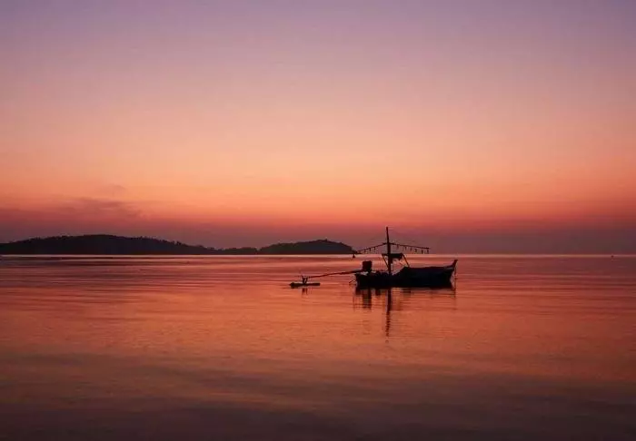 Wenn die samtige Dunkelheit der tropischen Nacht hereinbricht, entfalten sich magische Klänge und eine romantische Atmosphäre breitet sich aus. Die Zikaden stimmen ihr Konzert an, während irgendwo im Dorf die Mon ihre Musik spielen. Sanft plätschert das Wasser unter dem Flotel, das im warmen Schein flackernder Öllampen liegt.