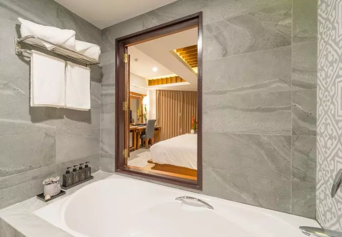 Das Hotel besitzt insgesamt 202 geräumige, mind. 30 m² große Zimmer. Jedes Zimmer ist mit Klimaanlage, WLAN, Safe, Minibar, TV-Gerät, Telefon, gratis Wasserflaschen und Wasserkocher für Tee und Kaffee eingerichtet. Das Badezimmer ist mit einer Dusche und einer Badewanne, Föhn und Toilettenartikeln ausgestattet.