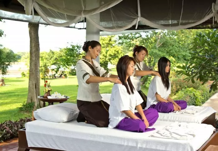 Nach einem erlebnisreichen Tag empfiehlt sich ein Bad im Infinity-Pool oder eine traditionell-thailändische Massage im Outdoor-Wellnessbereich Chiang Saen, bevor das Abendessen serviert wird.