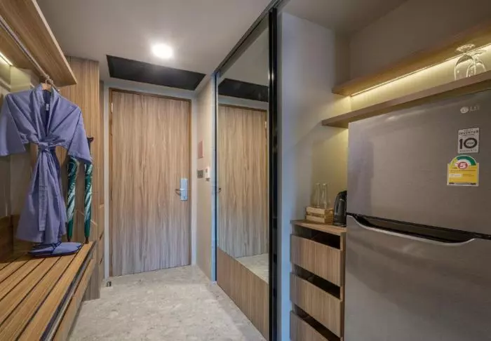 Das Hotel öffnete im Jahr 2017 und gehört somit zu den neueren Hotels Bangkoks. Es ist in stilvoll, einladend und modern eingerichtet, was sich auch in den insgesamt 85 Zimmern fortsetzt. Sämtliche Zimmer sind mit WLAN, Klimaanlage, TV-Gerät, gratis Mineralwasserflaschen, Kaffee- und Tee-Ecke, Aufenthaltsbereich und Schreibtisch ausgestattet. Das Badezimmer besitzt eine Dusche, Bademäntel, Toilettenartikel und einen Föhn.