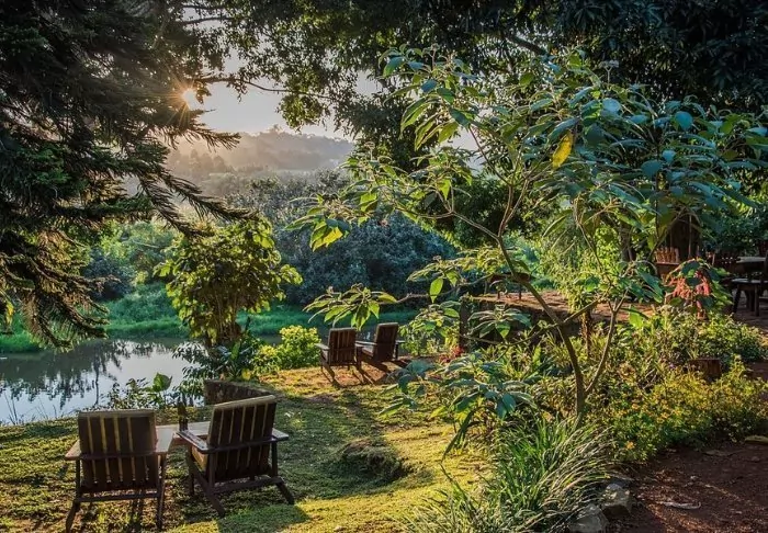An der Grenze zum Bwindi-Regenwald, direkt am Ufer eines kleinen Flusses, liegt die malerische Lodge Mahogany Springs. Die Lodge bildet den perfekten Ausgangspunkt für Ihr Gorilla-Tracking-Abenteuer, da man hier nicht nur eine prachtvolle Aussicht auf den Wald hat, sondern auch die Möglichkeit, einen Gorilla hautnah zu erleben, da diese friedlichen Geschöpfe die Lodge ab und zu gerne besuchen.